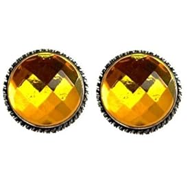 Sterling Silver Clips with Lemon Faceted Amber Gemstone 20mm Diameter: Jewelry