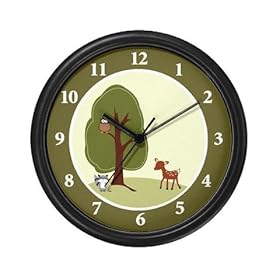 Woodland Creatures Deer Raccoon and Owl Wall Clock: Home & Kitchen