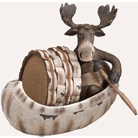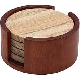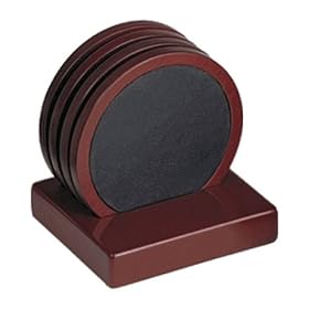 Stone Silhouette Drink Coaster Set with a Dark Walnut Holder: Kitchen & Dining