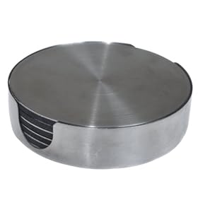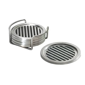 Stainless Steel Round Coasters - Set of 6 with Holder: Kitchen & Dining