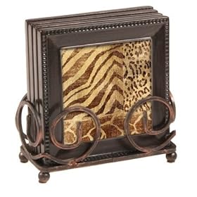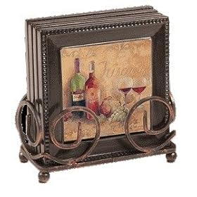 Set/4 Napkin Holder Coasters w/Holder: Kitchen & Dining