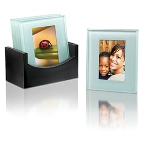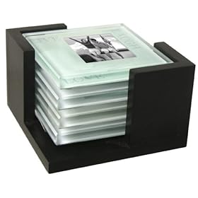 Sarah Peyton Multi-Color Glass Photo Coasters, with Storage Rack: Home & Kitchen