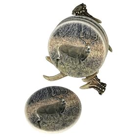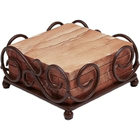 Royal Tapestries" Stone Drink Coaster Set with a Bronze Holder Included: Kitchen & Dining