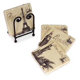 Eiffel Tower, Set of 4 Sandstone Coasters by Thirstystone: Kitchen & Dining