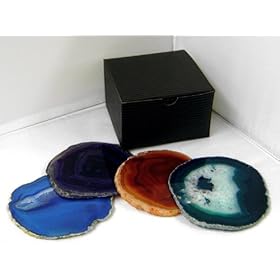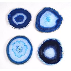 Blue Color Agate Slice Coaster Set of Four Agates Gift Boxed: Home & Kitchen