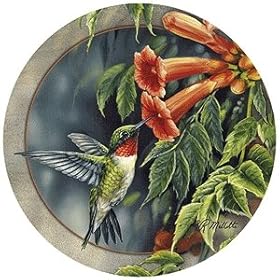 Set of 4 Sandstone Coasters - Hummingbird and Trumpet Vine: Home & Kitchen