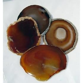 Red Agate Slice Coaster Set of Four Carnelian Stones Gift Boxed: Everything Else