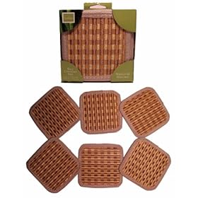 6 Piece Bamboo Woven Coaster Set, Woven Colorful Bamboo Slats. Natural Woven, a Classy Addition to Your Table and Décor: Kitchen & Dining