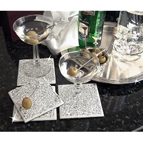 Silver Sparkle Wine Glass Coasters - Set of 4: Kitchen & Dining