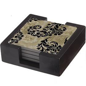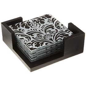 DII Black Damask glass coasters, Set of 6: Kitchen & Dining