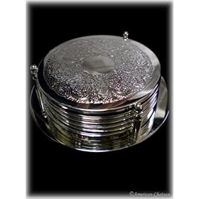Set 6 Silver Plated Wine Beverage Coasters Caddy: Kitchen & Dining