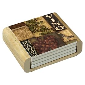Wine Collage Absorbent Coasters - Set of 4 w/ Caddy: Kitchen & Dining