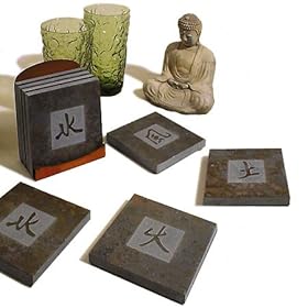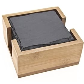 Thirstystone Slate Drink Coasters and Bamboo Coaster Holder: Kitchen & Dining