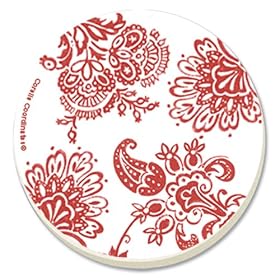 Corelle Red Paisley Absorbent Stone Coaster, 4-Pack: Kitchen & Dining