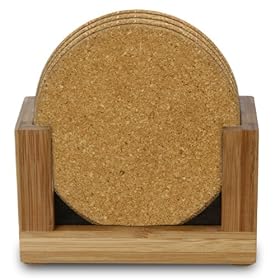 Cork Drink Coaster Set with Bamboo Holder included - Set of 6: Kitchen & Dining