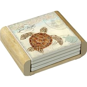 CounterArt Sea Turtle Design Absorbent Coasters in Wooden Holder, Set of 4: Kitchen & Dining