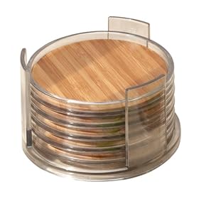 Thirstystone Bamboo Coaster Set with Wood Holder 6 Coasters Included: Home & Kitchen