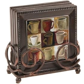Coffee Cups - 4 Coasters with Bronze Scroll Coaster Holder: Home & Kitchen