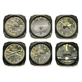 Vintage Aircraft Instrument Coaster Set - Set of 6: Kitchen & Dining