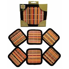6 Piece Bamboo Woven Coaster Set, Woven Bamboo Slats. Bright Stripe, a Classy Addition to Your Table and Décor: Kitchen & Dining