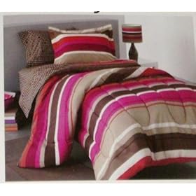 Student Lounge Twin XL Bed In Bag Pink Stripes Comforter Sheets Shams: Everything Else