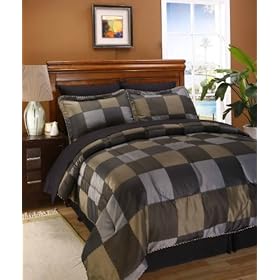 5 Pc Twin Brown / Beige Patch Work Square Quality Soft Micro Suede Comforter Set Bedding in a Bag: Home & Kitchen