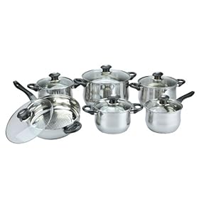 Vinaroz 12-Piece Vicenza Stainless Steel Cookware Set: Kitchen & Dining