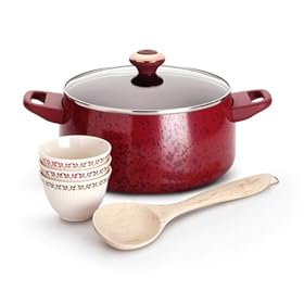 Paula Deen Porcelain 6 Piece Cookware Soup and Stew, Red: Kitchen & Dining