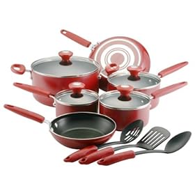 Paula Deen, 12512, 15 Piece Porcelain Cookware Set, Red: Kitchen & Dining