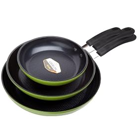 Ozeri ZP1-3P 3 Piece Green Earth Frying Pan Set with Textured Nonstick Ceramic Coating from Germany -- 100% PTFE and PFOA Free: Kitchen & Dining
