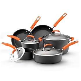 Rachael Ray Hard Anodized Nonstick 10-Piece Cookware Set, Orange: Kitchen & Dining