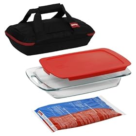 Pyrex Portable 4-Piece Set, includes 1-ea 3-qt Easy Grab Oblong, RedCover, Large Unipack, Black Carrier: Kitchen & Dining