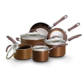 Paula Deen 21458 Dishwasher Safe Cookware Set Brown with Copper Accents, 11-Piece: Kitchen & Dining