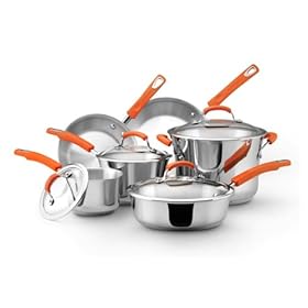 Rachael Ray Stainless Steel II Cookware Set, 10-Piece, Orange: Kitchen & Dining