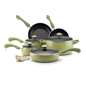 Paula Deen, 12515, Porcelain Nonstick 15 Piece Cookware Set, Pear: Kitchen & Dining