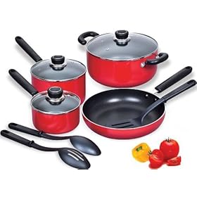 Silverstone by Farberware Culinary Colors 13-Piece Cookware Set, Red: Kitchen & Dining