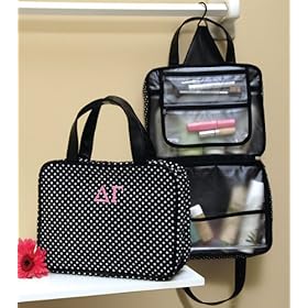 Black & Pink Polka Dot Hanging Cosmetic Bag: Clothing