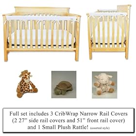 Narrow CribWrap Crib Wrap 3PC Rail Cover Set By Trend Lab - 1- 51" Front Rail Cover & 2- 27" Side Rail Covers & BONUS Cloud B Plush Rattle - White Fleece: Baby
