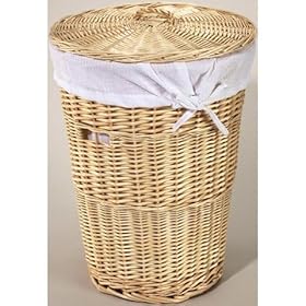 Badger Basket Natural Round Rattan Hamper with White Liner: Baby