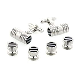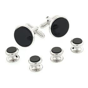 Mens Onyx and Silver Cufflinks and Studs Formal Set by Cuff-Daddy: Cuff-Daddy: Jewelry