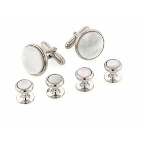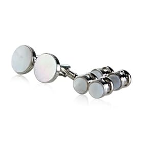 Mother of Pearl Silver Cufflinks and Studs Formal Set by Cuff-Daddy: Cuff-Daddy: Jewelry