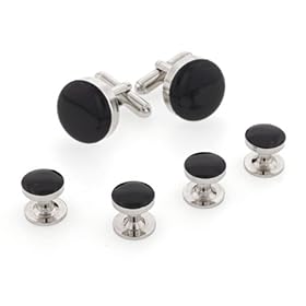 Tuxedo Cufflinks and Studs - Jet Black Round with Silver Trim - Cufflinks/Studs: Jewelry