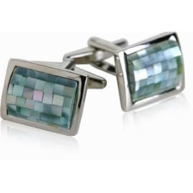 Gray Green Mother of Pearl Mosaic Stainless Steel Cufflinks by Cuff-Daddy: Cuff-Daddy: Jewelry