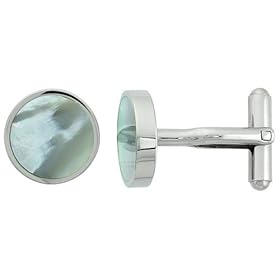 Stainless Steel Round Shape Cufflinks w/ Natural Mother of Pearl Inlay, 5/8 in.: Jewelry