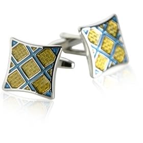 Yellow & Blue Plaid Cufflinks by Cuff-Daddy: Cuff-Daddy: Jewelry