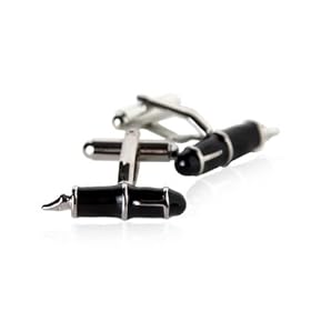 Whimsical Black Fountain Pen Enamel Silver Cufflinks by Cuff-Daddy: Cuff-Daddy: Jewelry