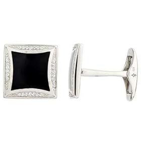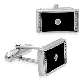 Men"s Sterling Silver Enamel Rectangular Diamond Cuff Links (1/10 cttw, I-J Color, I2-I3 Clarity): Jewelry