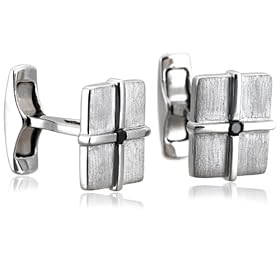 Men"s Sterling Silver Matte Square Cuff Links with Black Diamond (1/10 cttw): Jewelry