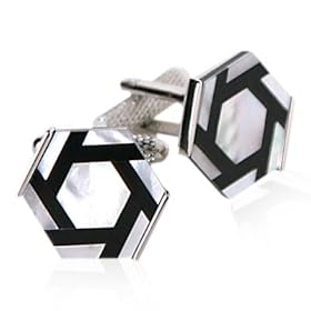 Onyx and Mother of Pearl Hexagonal Cufflinks Set in Silver by Cuff-Daddy: Cuff-Daddy: Jewelry