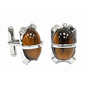 Bosovi Designer Cufflinks Sterling Silver 0.06ctw Diamond and 23.1ctw Tiger"s Eye Plated in Platinum: Prodori: Jewelry